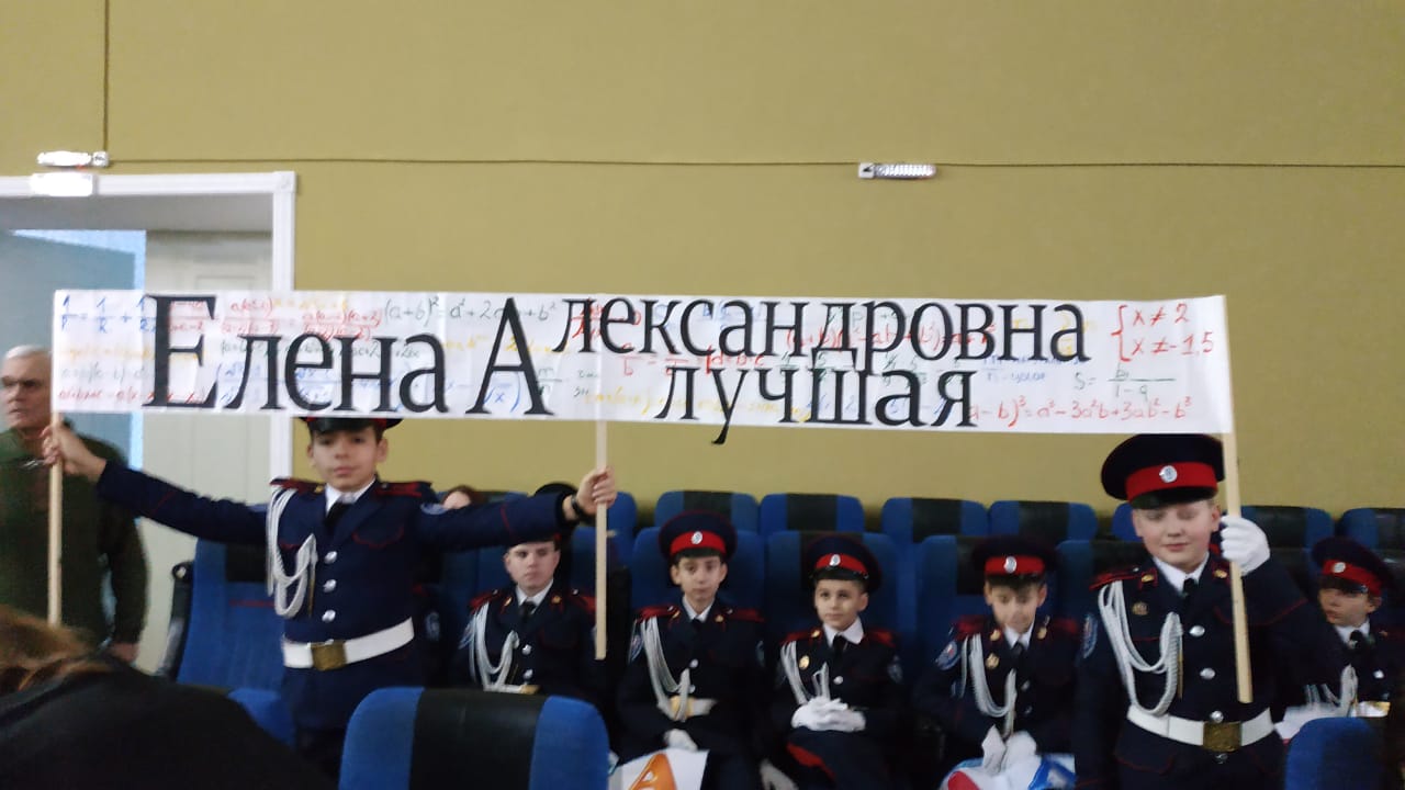 В день открытия состоялось первое испытание для конкурсантов – «Конкурс визиток». Вместе со своими учениками, кадетами 8Б и 10 классов, Елена Александровна выступила на сцене, перед этим показав фильм о своей работе в кадетском корпусе. Поддержать своего учителя приехали ученики 6А класса, подготовив красочные лозунги.