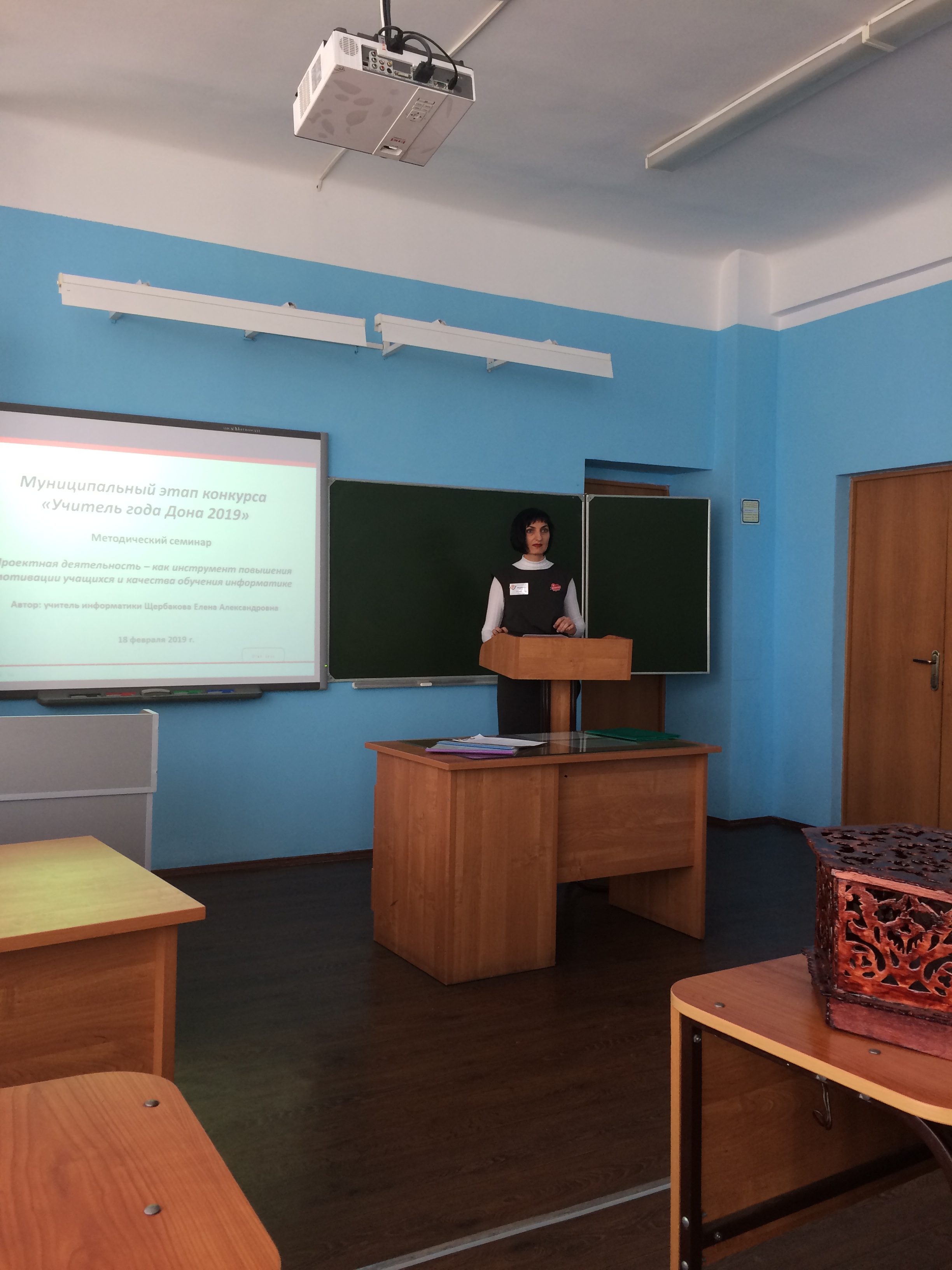 Третье испытание муниципального этапа конкурса "Учитель года Дона 2019" прошло 18 февраля в МБОУ СОШ № 20 г. Новочеркасска. На этот раз конкурсант, учитель информатики Донского императора Александра III казачьего кадетского корпуса Шербакова Елена Александровна выступила на методическом семинаре с докладом об опыте своей работы. Здесь педагог рассказал об основных методах своей работы, об интеграционных и метапредметных связях в своих уроках, поделилась опытом создания волонтерского отряда по безопасности дорожного движения на Дону на базе своего учебного заведения и представила результаты, подтверждающие эффективность ее авторской методики.