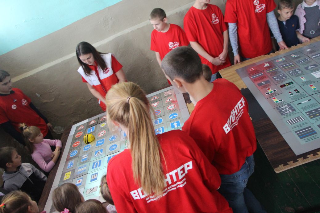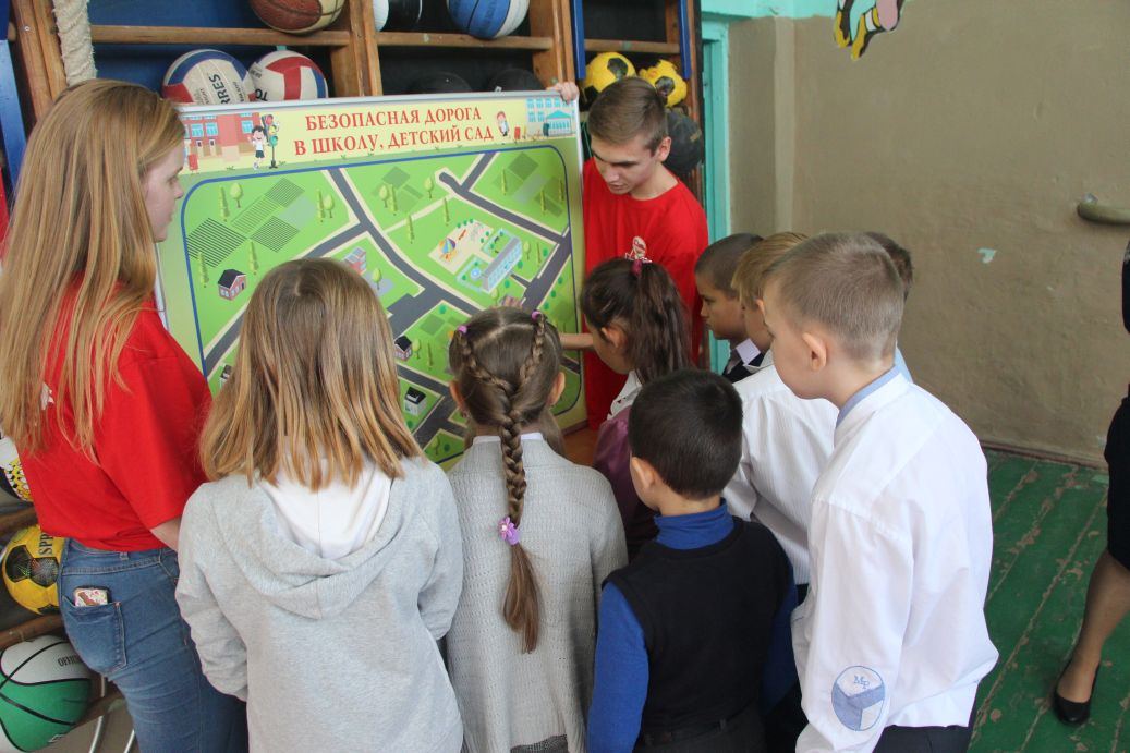 Волонтеры (Власова Ольга, Усольцев Александр, Поддубный Никита) из Донского государственного технического университета и школьники из Мишкинской школы (Московченко Виктория, Кошманов Илья, Делов Матвей, Васильева Кристина, Смелов Дмитрий, Колесников Дмитрий, Семён Аверкин, Павел Аханов, Казьмина Валерия) провели интегрированные занятия со всеми детьми Александровской школы по безопасности дорожного движения по следующим темам: